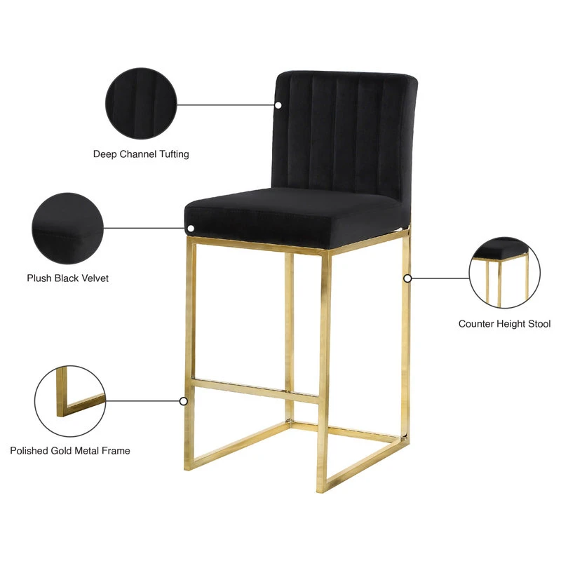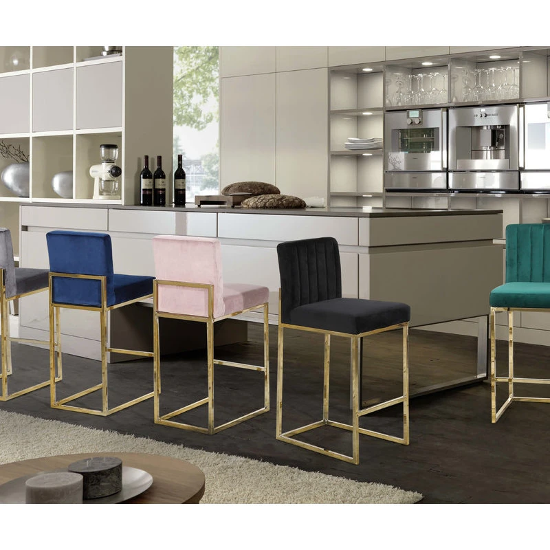 Standing tall above the rest, the Giselle Velvet Counter Stool flaunts the best of modern design. Give your guests a taste of luxury as they sit atop plush velvet seats, which are elevated by sleek, golden legs. These stools incorporate contrasting materials and textures, adding a touch of opulence to your kitchen island.