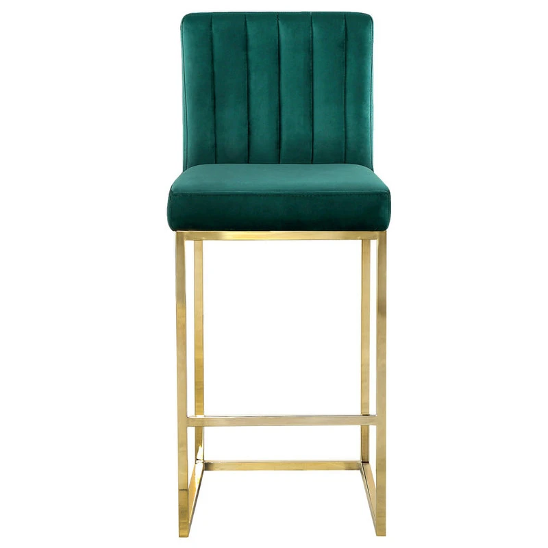 Standing tall above the rest, the Giselle Velvet Counter Stool flaunts the best of modern design. Give your guests a taste of luxury as they sit atop plush velvet seats, which are elevated by sleek, golden legs. These stools incorporate contrasting materials and textures, adding a touch of opulence to your home bar.