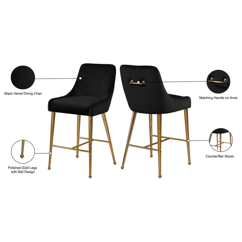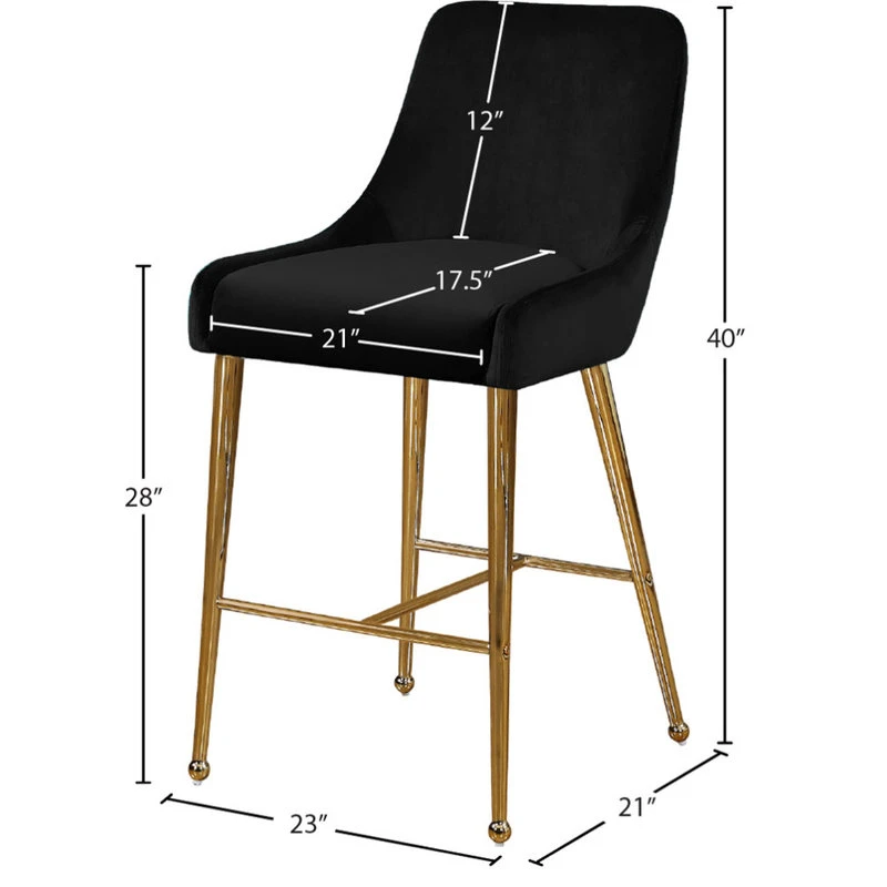 The home bar or kitchen counter gets a contemporary makeover with the addition of this Owen Black Velvet Stool. Clean lines and a simple design make this stool nothing short of elegant. The black velvet upholstery is sleek and svelte to the touch, revving up the comfort factor of this stunning stool. The polished gold legs have a ball design that’s both modern and sophisticated, while a matching handle on the back adds to the overall modish feel of this delightful stool.