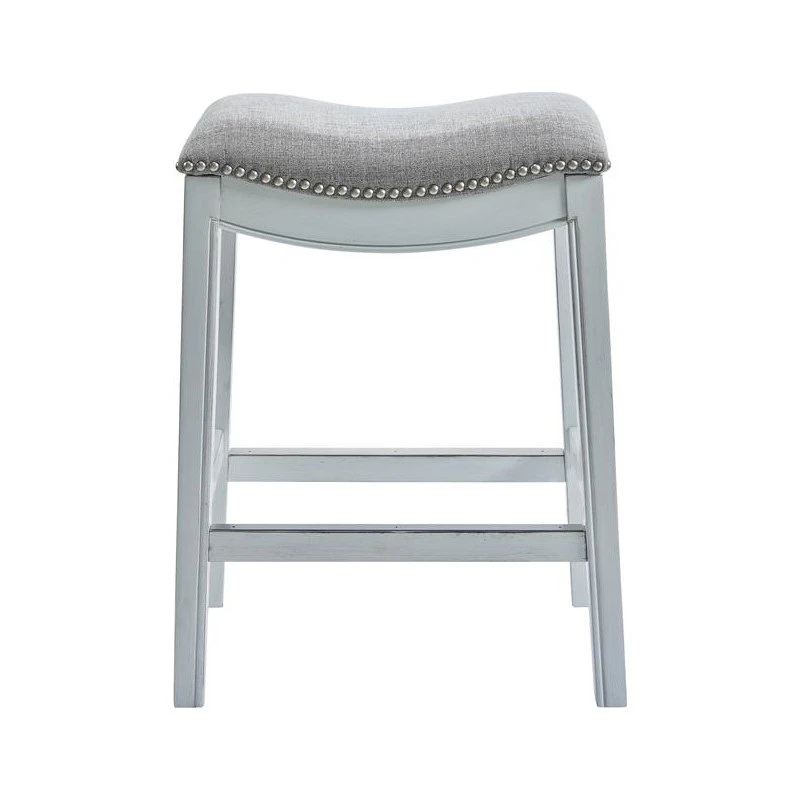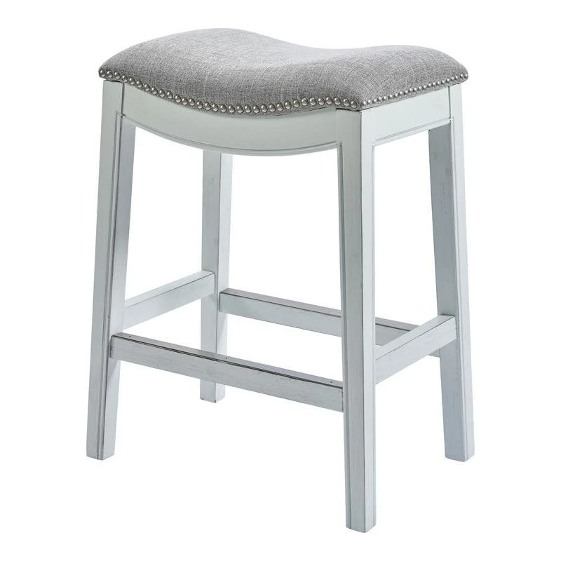 The NewRidge Home Zoe Bar Stool has a comfortably upholstered seat articulated with antique nail head accents that are hand applied. The subtly contoured saddle is atop a beautifully finished solid wood frame. Solid wooden furniture is durable, sturdy and timeless.