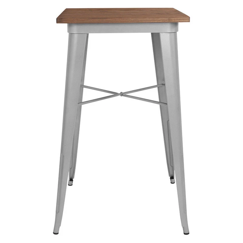 Offex 23.5″ Square Silver Metal Indoor Bar Height Table with Walnut Rustic Wood Top, Turn your dining area into a showcase with this industrial style bar table. The compact sized bar table won’t take up a lot of floor space and mixes well with standard height tables. It features a gorgeous textured surface with cross-braces that gives it increased stability. Rubber floor glides protect your floor by sliding smoothly when you need to move the table. Mix and match this style table with any metal stool, even using different colors. The possibilities are endless with the multitude of environments in which you can use this table, for both commercial and residential spaces.
