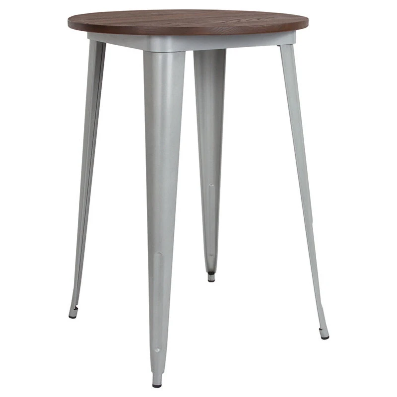 Offex 30″ Round Silver Metal Indoor Bar Height Table with Walnut Rustic Wood Top, Turn your dining area into a showcase with this industrial style bar table. The compact sized bar table won’t take up a lot of floor space and mixes well with standard height tables. It features a gorgeous textured surface with a stabilizing brace that gives it increased stability. Rubber floor glides protect your floor by sliding smoothly when you need to move the table. Mix and match this style table with any metal stool, even using different colors. The possibilities are endless with the multitude of environments in which you can use this table, for both commercial and residential spaces.