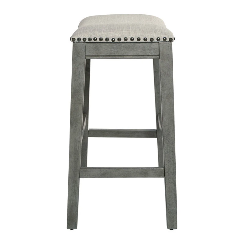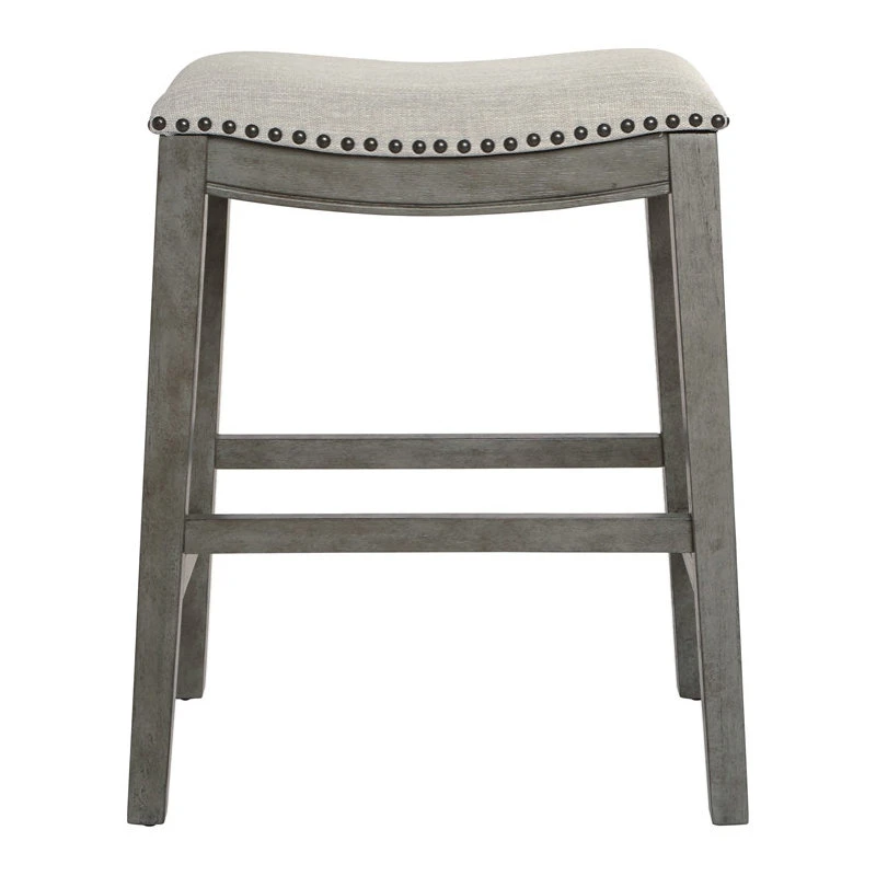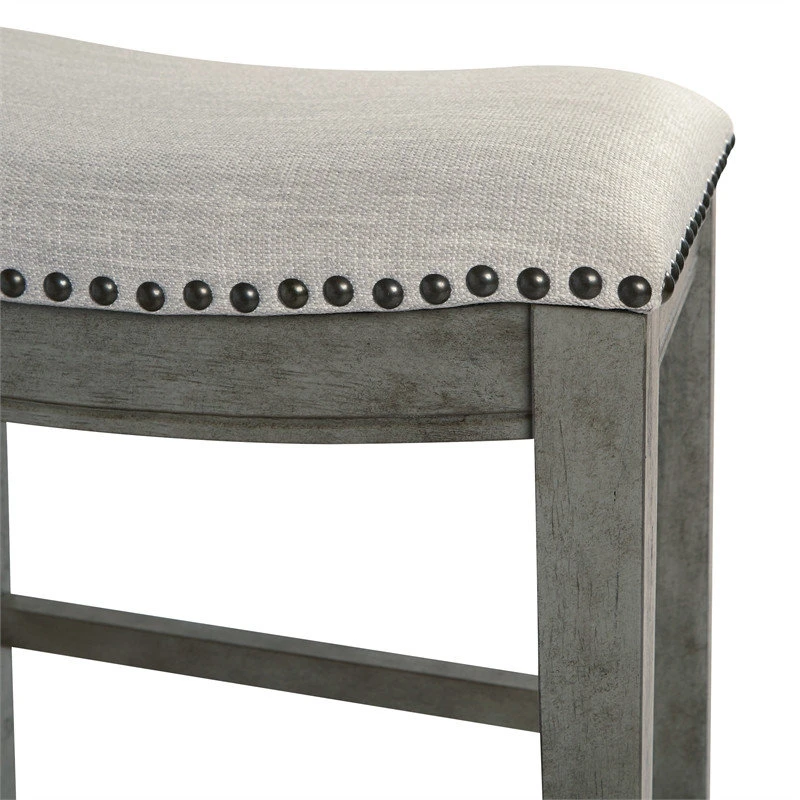 Saddle Wood Stool 24″ in Gray Fabric and Antique Gray Base and Nailheads 2-pack
