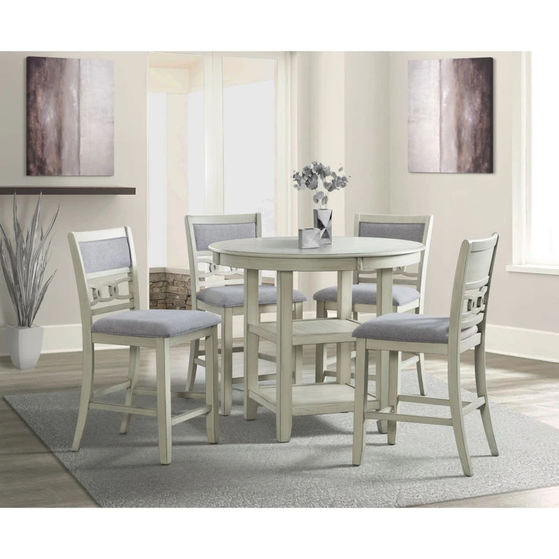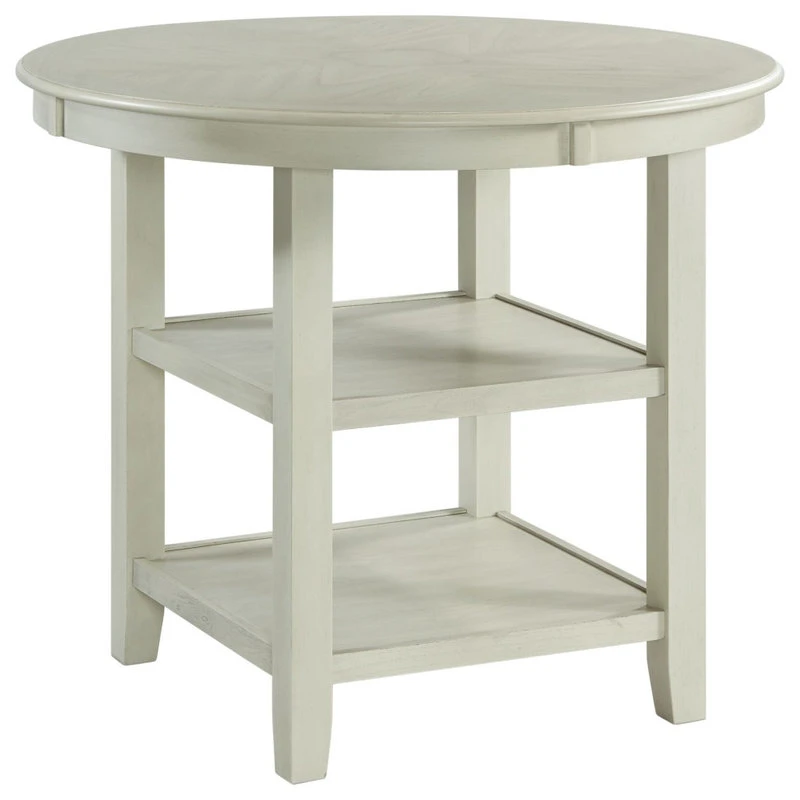 The Picket House Furnishings Taylor Counter Height Dining Table will look fantastic in your dining room! This table is ideal for small space living. The round table top lets you move around with ease, while the extra shelf in the base lets you store away anything you might need during your meal. The bisque finish is striking and will look great with any decor you might have. The kicked out legs definitely add extra style to this already stunning piece. The transitional design of this piece will easily become a staple in your home year after year.