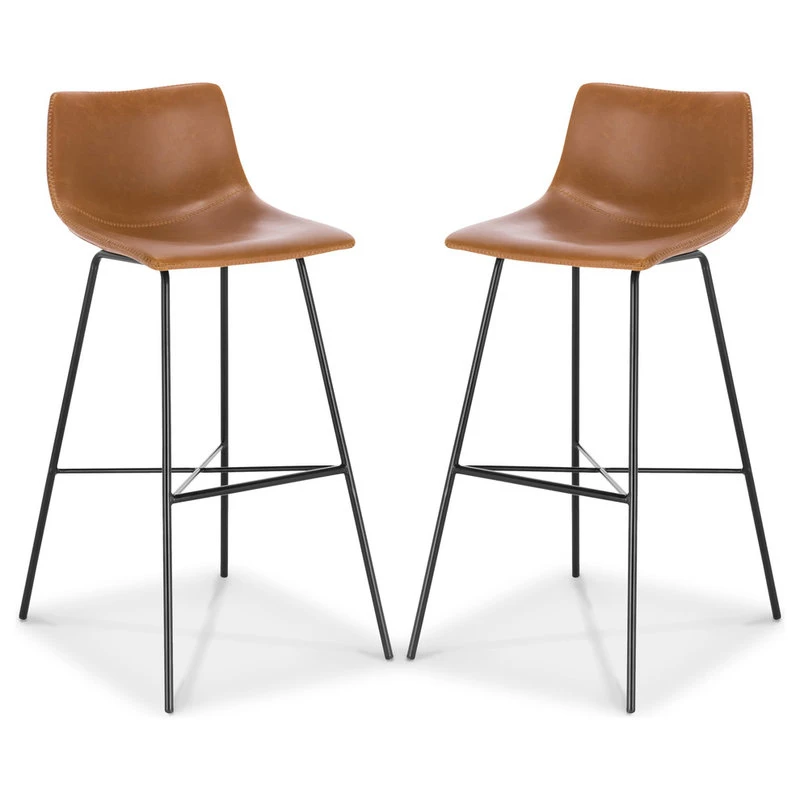 Pull this handsome bar stool up to the bar or kitchen island for a signature urban look. Designed with a gently scooped seat and low-profile back upholstered in beautiful, yet durable textured leatherette, its subtly exposed saddle stitching will leave your guests impressed. A welded steel base ensures this robust bar stool is a great choice for everything from kitchen countertops to modern restaurants.