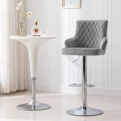 Duhome Inc 1 X Diamond Stitched Height Adjustable Velvet Bar Stool, Grey