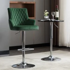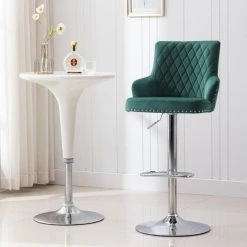 Duhome Inc 1 X Diamond Stitched Height Adjustable Velvet Bar Stool, Atrovirens