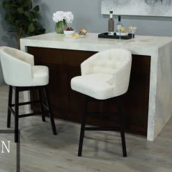 GDFStudio Westman Contemporary Tufted Swivel Barstools With Nailhead Trim, Set Of 2