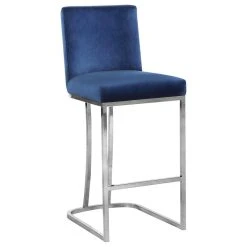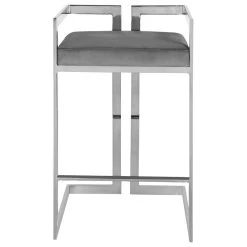 Meridian Furniture Ezra Counter Stool, Set Of 2, Gray Velvet, Chrome Base