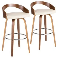 Lumisource Grotto Mid-Century Modern Barstool, Walnut/Cream Faux Leather, Set Of 2