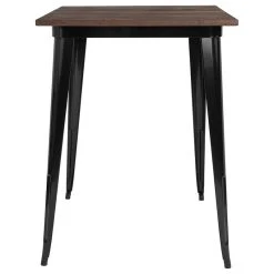 Flash Furniture 31.5″ Square Metal Indoor Bar Height Table With Walnut Rustic Wood Top, Black