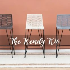 Lumisource Duke 26″ Counter Stool, Black, Set Of 2, Light Gray Cowboy Fabric, Bl