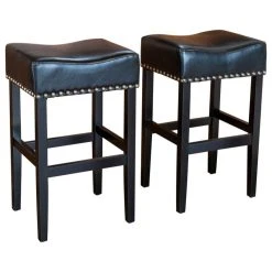 GDFStudio GDF Studio Chantal Backless Leather Stools, Set Of 2, Black, Bar Height: 30″