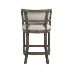 Jennifer Taylor Home Paris Stool With Backrest, Light Beige Linen, 26″ Counter Height