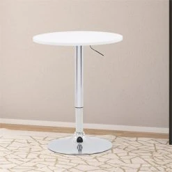 CorLiving Distribution LLC CorLiving Adjustable Round Pub Table – White And Metal