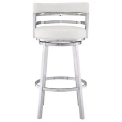 Armen Living London Swivel Barstool, Cream/Walnut Veneer/Chrome