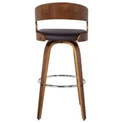 Armen Living Jayden Swivel Stool With Faux Leather And Walnut Veneer, Brown, Counterstool