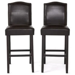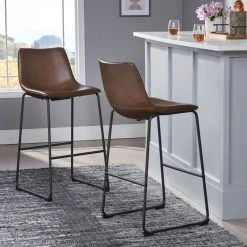 GDFStudio GDF Studio Auburn Brown Leather Backed Bar Stools, Set Of 2