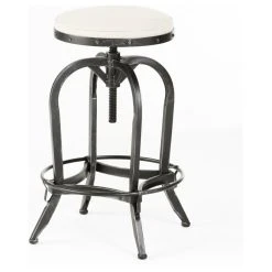 GDFStudio GDF Studio Brixton Adjustable Swivel Iron Bar Stool, Beige Fabric