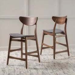 GDFStudio GDF Studio Molle Mid-Century Design Counter Stools, Gray/Walnut, Set Of 2