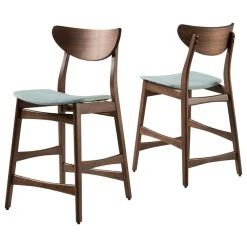 GDFStudio GDF Studio Molle Mid-Century Design Counter Stools, Mint/Walnut, Set Of 2