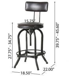 GDFStudio GDF Studio Modern Industrial Upholstered Adjustable Height Swivel Barstool