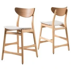 GDFStudio GDF Studio Molle Mid-Century Design Counter Stools, Beige/Oak, Set Of 2