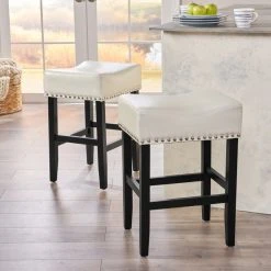 GDFStudio GDF Studio Ralph Off-White Leather Backless Counter Stool, Set Of 2