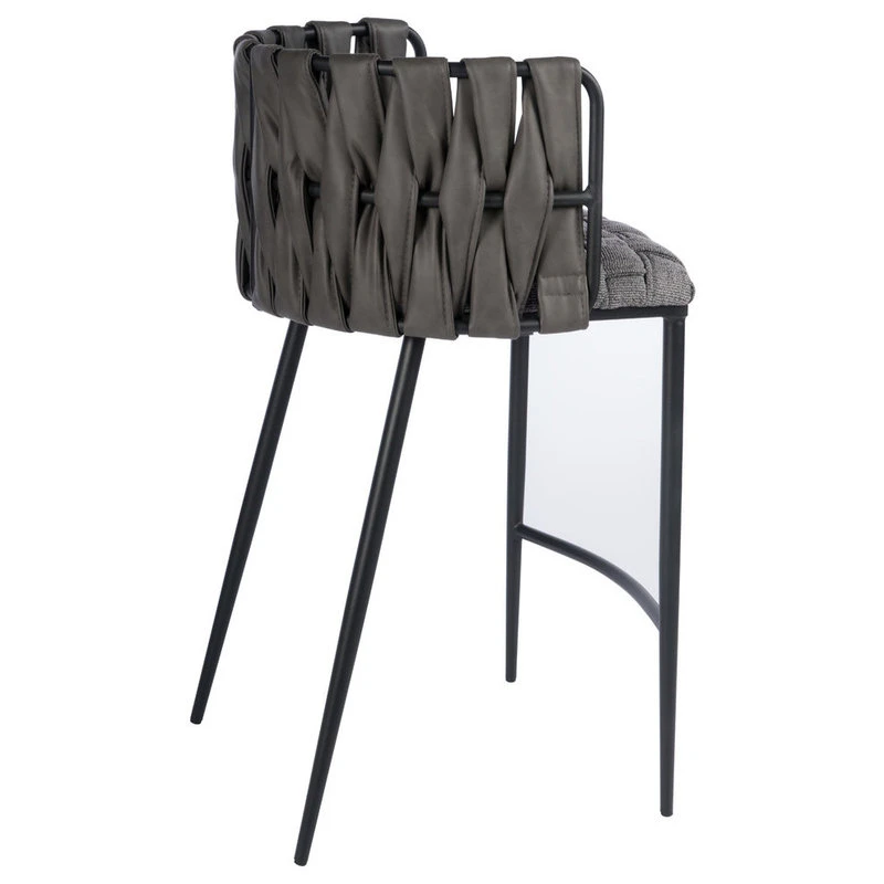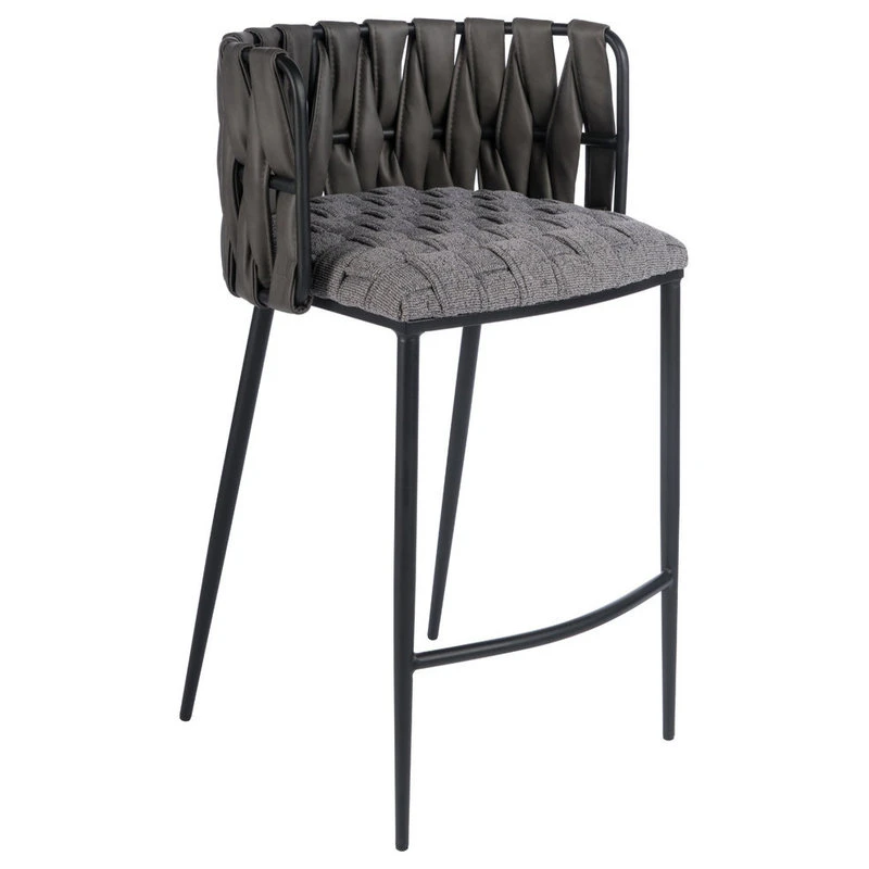 Textured weaved fabric on the base and weaved leather on the seat creates this counter chair with sleek design. Seat height 26″. Back 9.5″h, Footrest 9.25″ from the ground