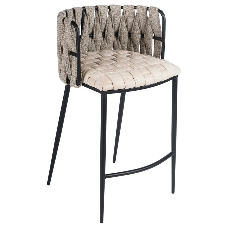 - Textured weaved fabric on the base and weaved leather on the seat creates this counter chair with sleek design.