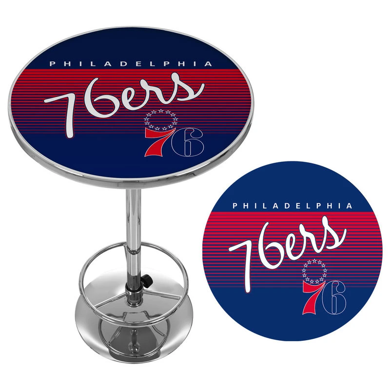 Impress your guests with your officially licensed chrome pub table. This fully functional pub table will be a stylish accent to your game room, garage or collection. The table top features an officially licensed logo trimmed with chrome finished plastic banding and is supported by a chrome base. The chrome base is both lightweight and durable. It features an adjustable foot rest for customizable comfort. Bring style, function and comfort to your game room, garage or collection with an officially licensed chrome pub table.