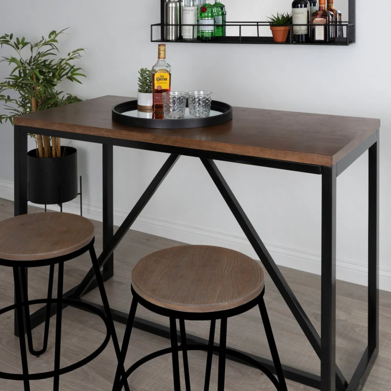 Linear proportions with a solid man-made wooden top coupled with the modern geometric shaped wood base make the Kaya Pub Table ideal for a contemporary dining experience. It’s tall enough to be used either to sit at using your favorite barstools or to stand or lean against. The sizable tabletop makes it ideal as a desk or craft table and it’s lightweight enough to move exactly where and how you need it. Also, it’s perfect for setting snacks and entrees on for get-togethers. The straight-line contemporary design of the Kaya Pub Table emphasizes minimalist, chic design to create a beautiful statement piece in any home.