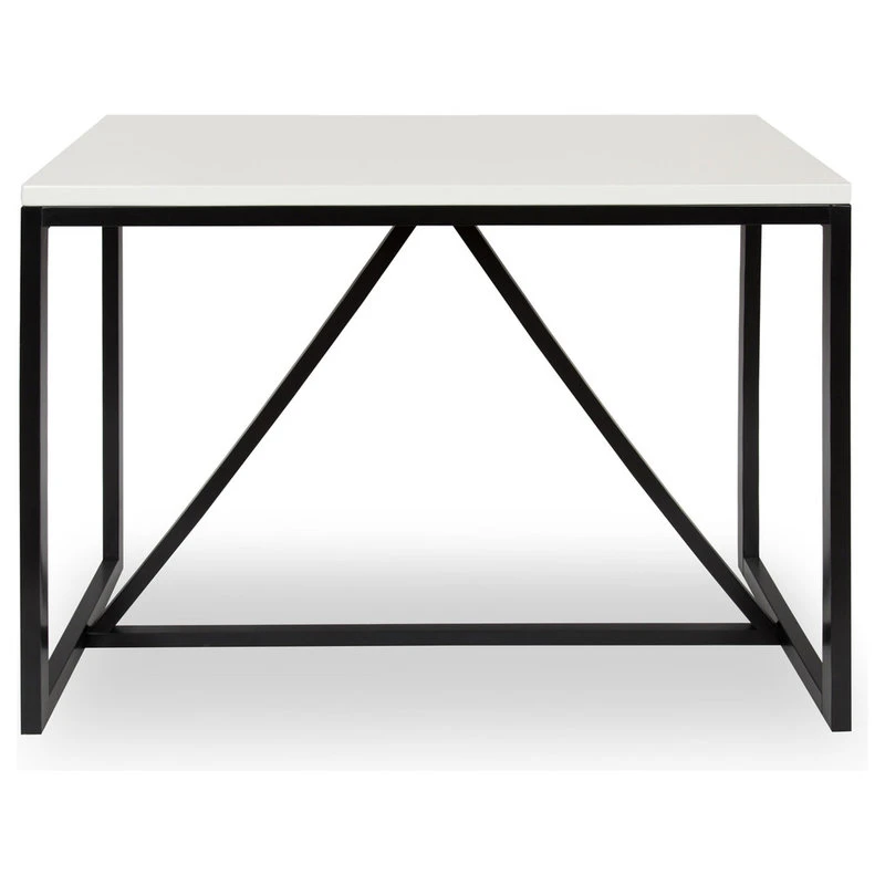 Linear proportions with a solid man-made wooden top coupled with the modern geometric shaped wood base make the Kaya Pub Table ideal for a contemporary dining experience. It’s tall enough to be used either to sit at using your favorite barstools or to stand or lean against. The sizable tabletop makes it ideal as a desk or craft table and its lightweight enough to move exactly where and how you need it. Also, it’s perfect for setting snacks and entrees on for get-togethers. The straight-line contemporary design of the Kaya Pub Table not only features the sleek high-sheen white top but comes in your choice of two base finish options – modern walnut brown or a dramatic gloss black either choice is sure to enhance the look and feel of your dining room décor.