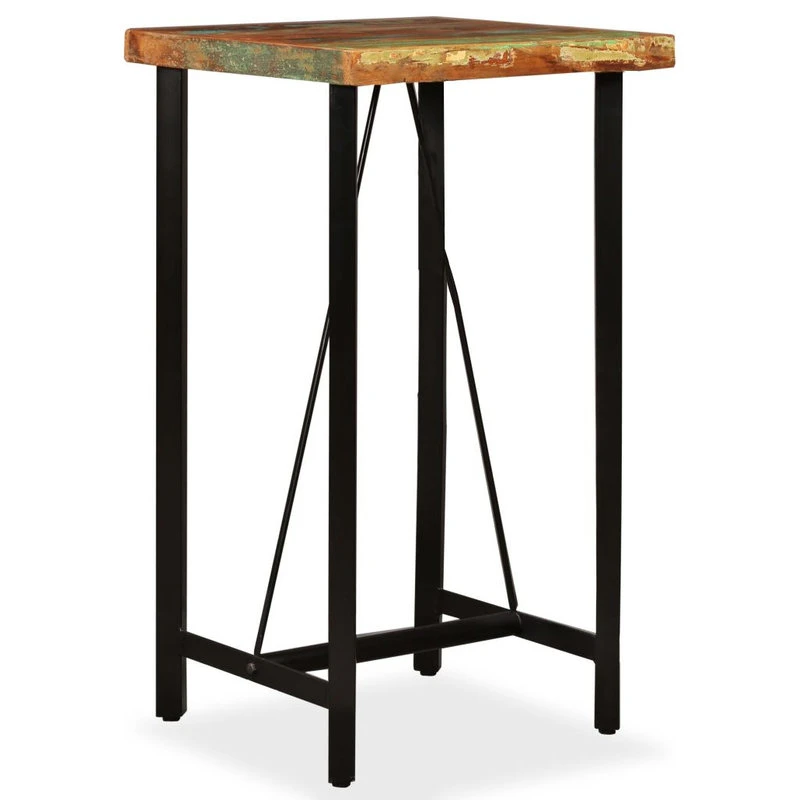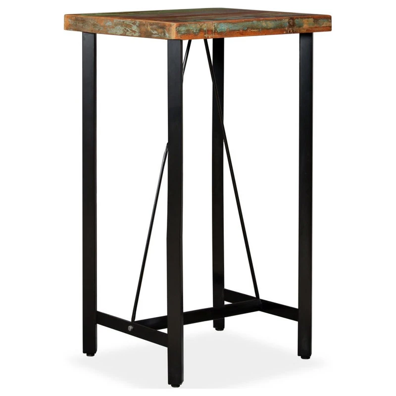 This cool wooden bar table has an industrial look and will make a distinctive addition to your kitchen or dining room. The bar table is made of the solid reclaimed wood, which means that it has the characteristics of different woods like Teak, Mango wood, Acacia, etc. Reclaimed wood is solid, stable, durable and beautiful. Signs of wear and craftsmanship give each piece a unique look. It is fully handmade. The strong steel legs make the bar table very sturdy and durable and add to its spectacular industrial style. Assembly is very easy. Important note: The colors vary from piece to piece, making each piece unique; the delivery is random.