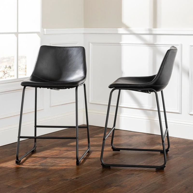 This sophisticated and sleek stool is sure to modernize your countertop seating. The Industrial Counter Stool has been dressed up with soft faux leather and accented with steel legs and an incorporated metal footrest. By taking a traditional design and updating it for the modern home, the Industrial provides practical seating for your dining space and looks stylish doing it.